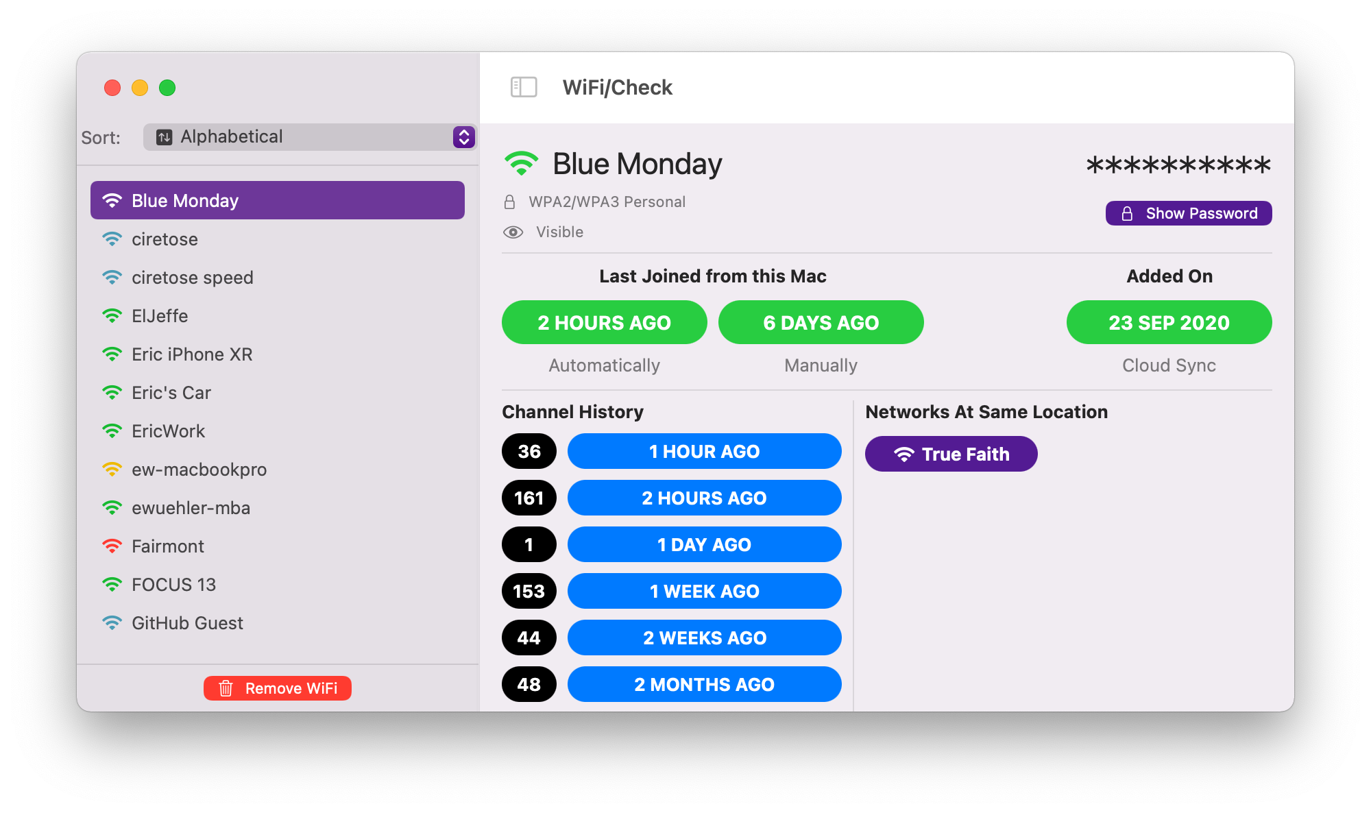 items from the list here. The app uses the command line networksetup to remove the network.